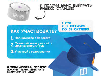 10 ноября среди участников, номинировавших любимого педагога, компания «ИКАР» разыграет умную колонку Алиса.